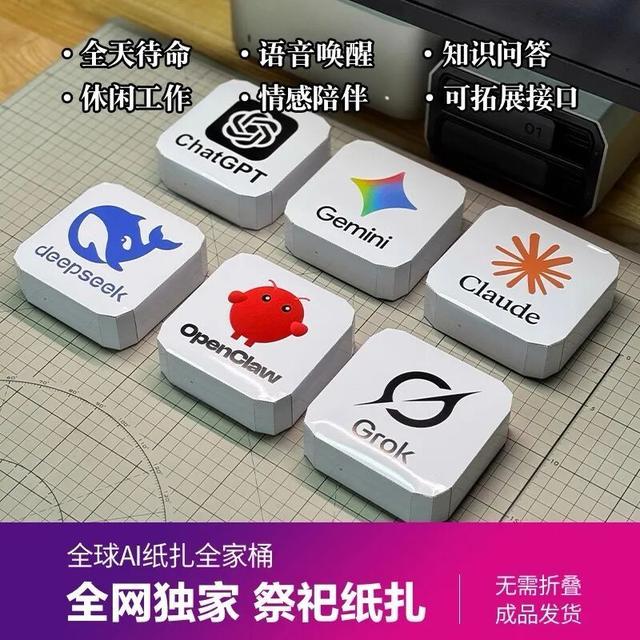 清明节将至,有网友浏览购物网站时发现,购物平台上一家店正在售卖“AI纸扎全家桶”,售卖“OpneClaw”“deepseek”“ChatGPT”“Gemini”“Claude”“Grok”等模型,在商品详情页面有“全网独家,祭祀纸扎”字样。