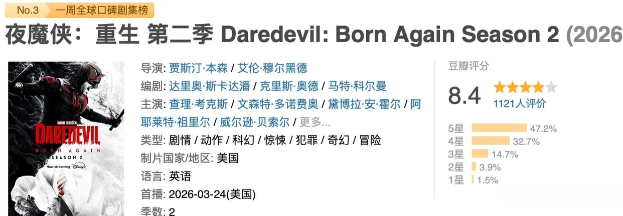 Disney+接过旗帜,推出全新系列《夜魔侠:重生》,并在第二季完成了从“重启”到“焕新”的蜕变。