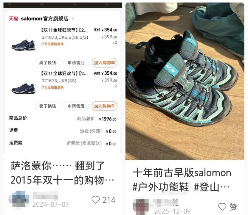 从前的萨洛蒙,价格相对亲民、颜值也更朴实无华。(图/社交平台截图)